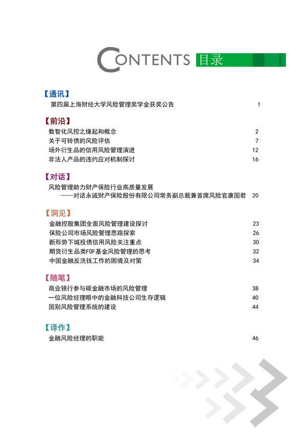 2017年11月12日,对于《上财风险管理论坛》杂志而言是一个很特殊的日子,就是在这一天杂志正式创刊。创办这个杂志的初衷说来也很简单,就是希望搭建起一个分享风险管理思想、交流风险管理经验的平台,将关于风险管理的深刻洞见与真知灼见记录下来,并且能够传承下去。杂志是在每季度末月的28日正式对外发布,设置了“前沿”、“对话”、“洞见”、“随笔”等特色栏目,每期刊登10至15篇聚焦风险管理的实务文章。