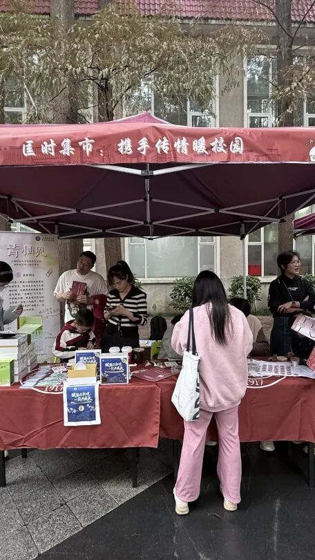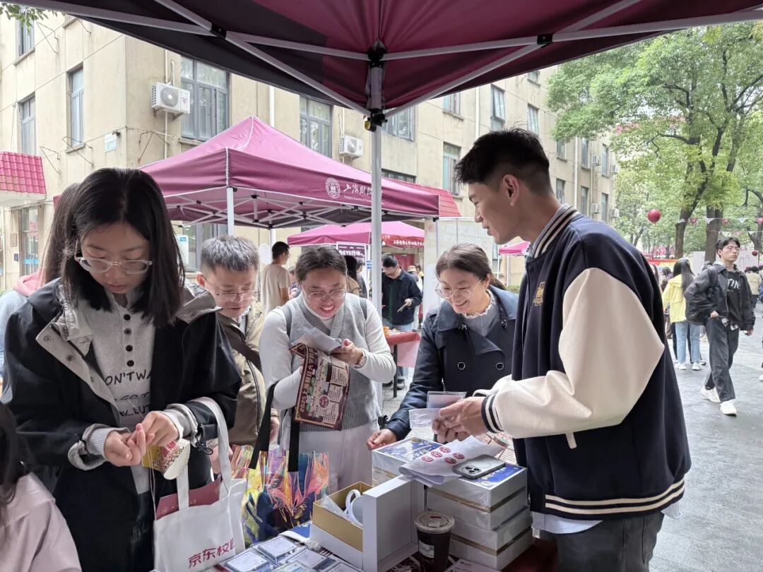 校友返校日期间,国际教育学院在校友总会组织的“青春集市”游园会上设立特色展位,精心呈现融合学院文化元素的系列文创产品,吸引了众多校友驻足参与。本次义卖所得将全部捐赠至上海财经大学教育基金会“筑梦行-暖冬计划”,用于为山区儿童提供冬日温暖包。这一公益善举充分彰显了上财国教人“经世济民、回馈社会”的责任担当,也是学院“经济匡时”精神在新时代的生动实践。