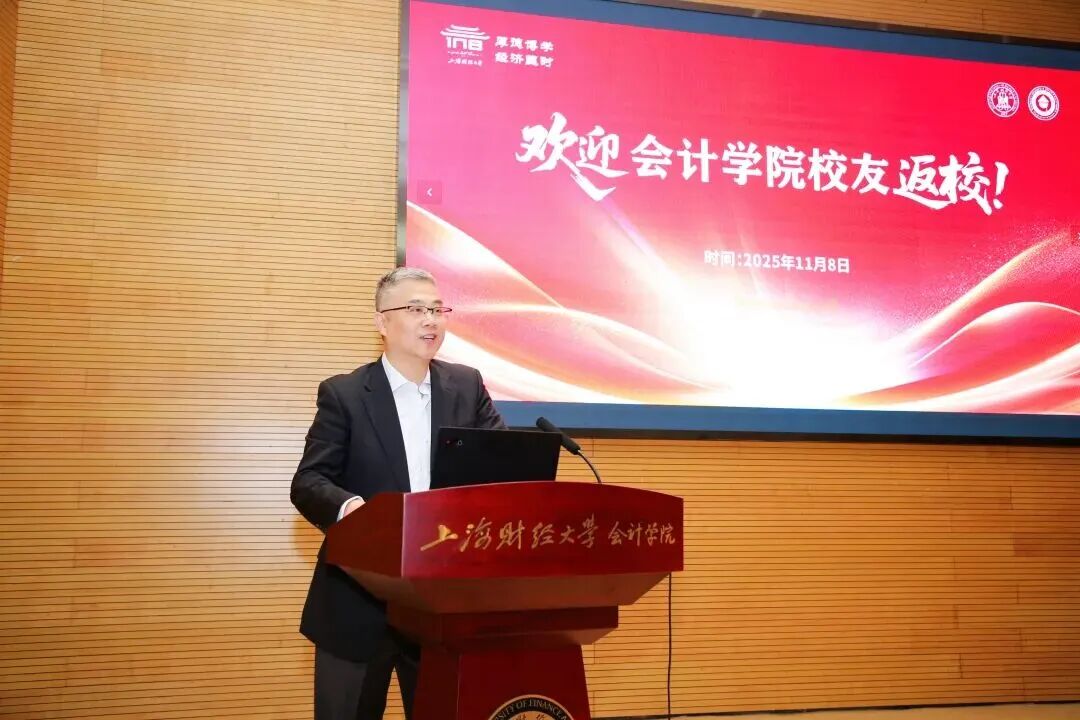 本次讲座由上海财经大学会计学院1991级国际会计专业校友钱亮主持,他现任会计学院本科教学工作指导委员会委员,以校友与教育指导者的双重身份搭建起交流桥梁,为这场返校日学术对话拉开序幕。