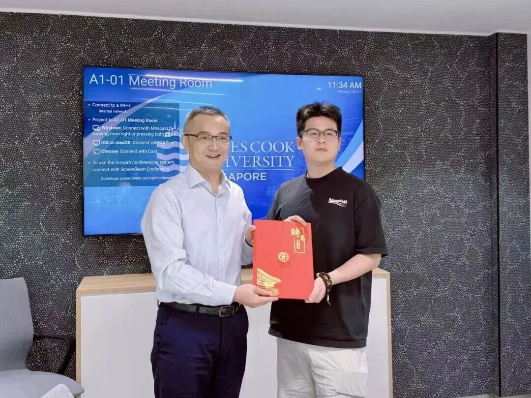 访问期间,沈晖院长还与新加坡地区校友代表进行座谈,详细了解校友在当地的学习与工作情况,对他们在海外的拼搏与成就表示由衷肯定,并感谢他们长期以来对学院工作的关注与支持。座谈中,院长为李佳懿校友颁发新加坡地区“校友联络大使”证书,勉励其持续发挥桥梁作用。