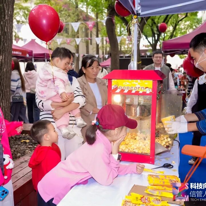 校友们在展台合影打卡、购买学院特色文创、领取爆米花及院徽气球。来自学院团学联的同学们作为展台志愿者,热情地接待每一位校友。展台吸引了众多返校校友的驻足,大家在重温旧日时光的同时,也深切感受到了信管人的热情与活力。