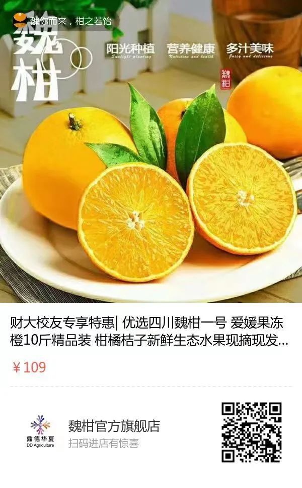 上财校友魏柑专属优惠:通过校友专属链接购买,可获得直减30特惠价。优选魏柑1号原价139元(一箱十斤),校友优惠价109元。