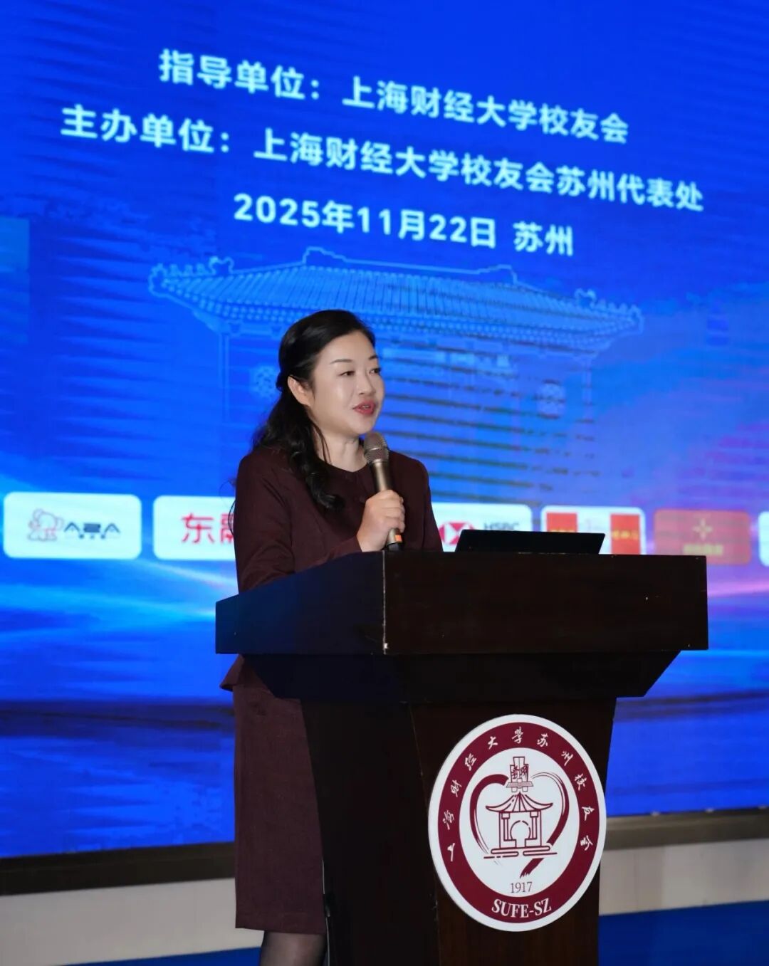 苏州卓盟高校校友联盟轮值主席叶晓明女士随后致辞。她为上财秦健聪会长对卓盟的支持“点赞”,并展望了各校友会携手共进、协同发展的美好愿景。