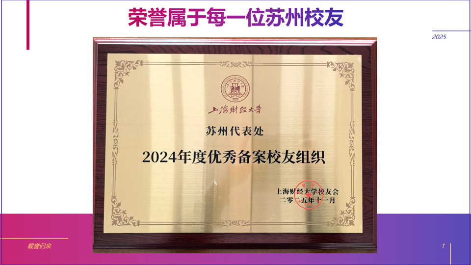 每一份荣誉都是对无私奉献的诚挚感谢与致敬,点点星光汇聚成苏州校友会今日的璀璨星河。