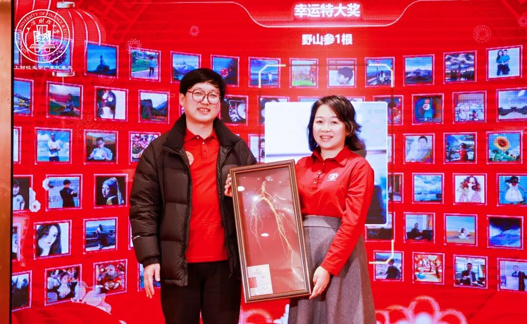 压轴幸运特大奖野山参,由吉林校友会卢晟杰执行会长暖心送出,将现场氛围推向顶点。