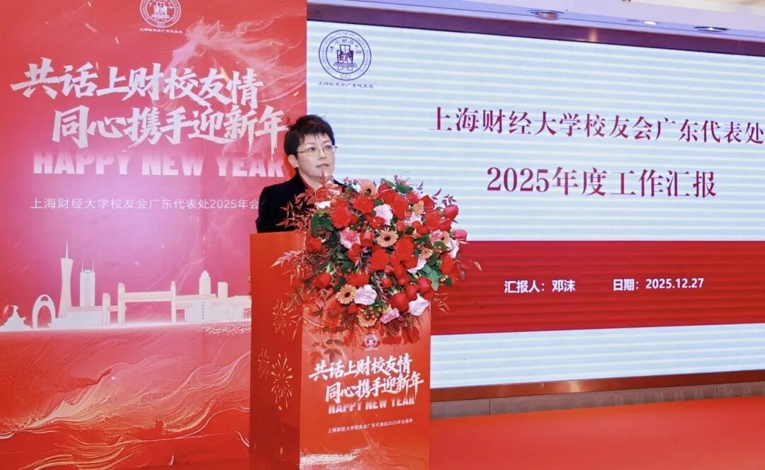 年会上,邓沫会长做了上财校友会广东代表处2025年度工作汇报,她回顾了这一年来广东代表处的工作,并对新的一年进行了展望。2025是夯实基础、走向正轨的起步之年;2026将是凝心聚力、全面发展的一年!愿全体广东校友一起发力,让上财校友会广东代表处越来越好!
