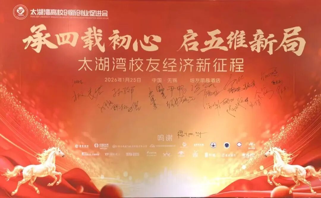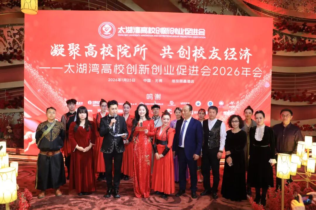 2026年元月25日,“凝心聚力,共创未来”为主题的无锡太湖湾高校创新创业促进会二届十次理事会、会员大会暨2026年年会圆满举行。市委组织部人才处处长、校促会创始人袁晓雷、校促会理事代表及各校友会代表齐聚一堂,上海财经大学校友会无锡代表处副会长兼秘书长何耀胜出席会议。
