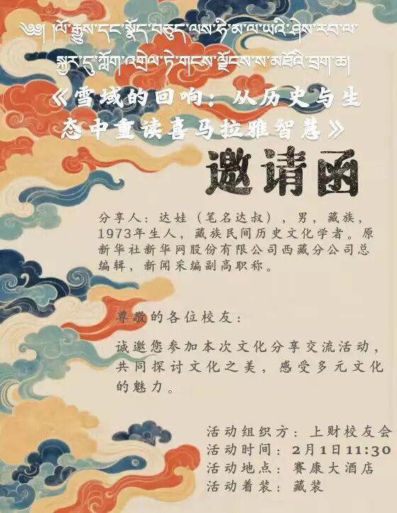 本次活动既是上海财经大学校友会西藏代表处的年度盛会,也是一次跨校际、跨领域的知识对话与文化交融。通过团队互动、主题演讲与自由交流相结合的形式,活动进一步强化了校友之间的联结,提升了大家对西藏自然、历史与文化的整体认知。