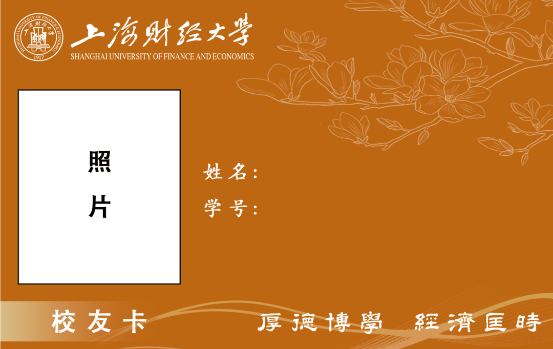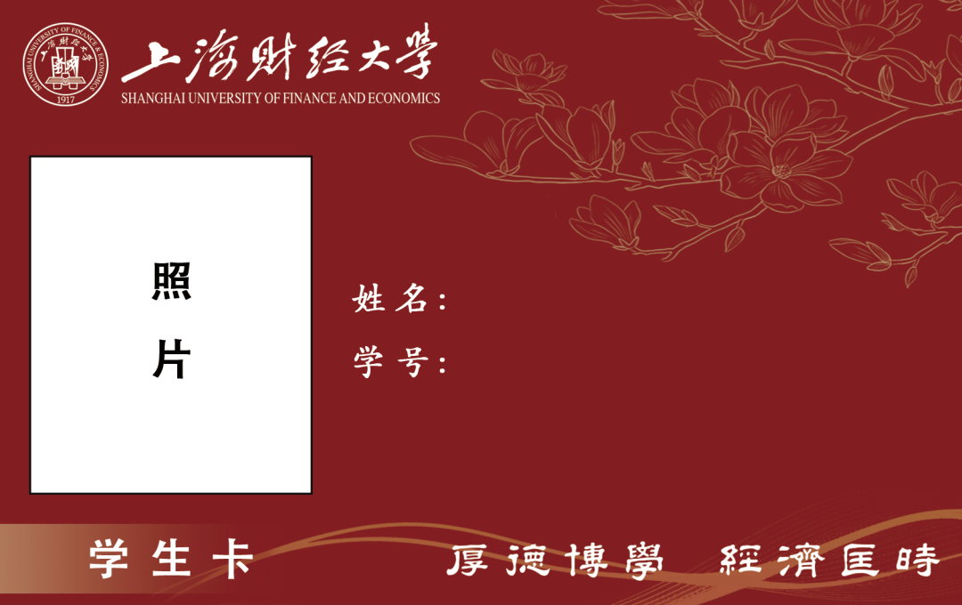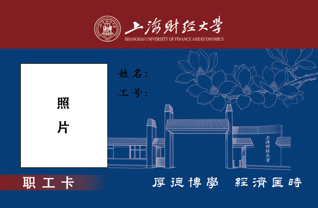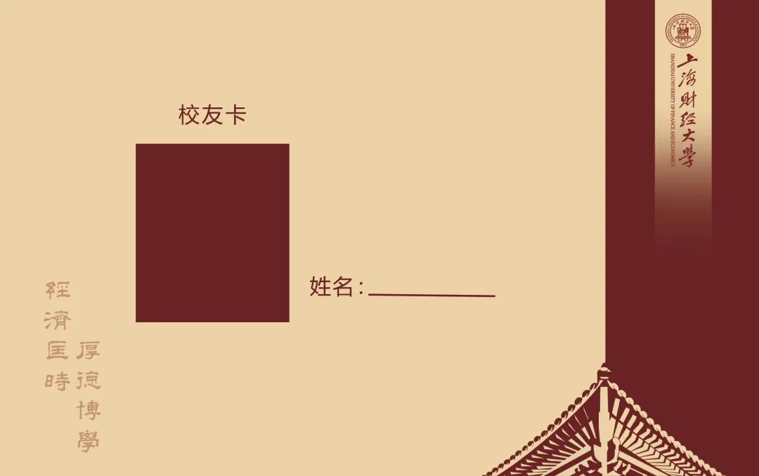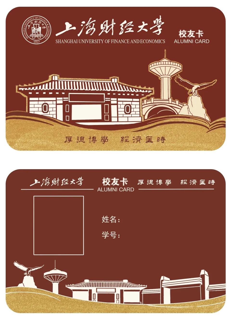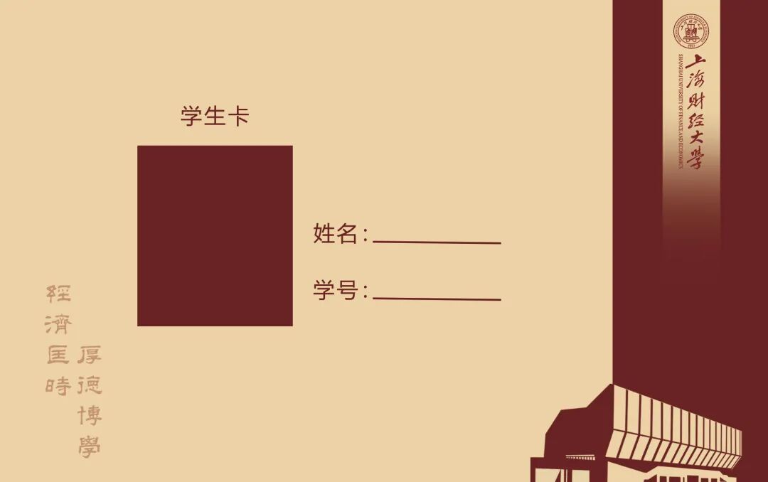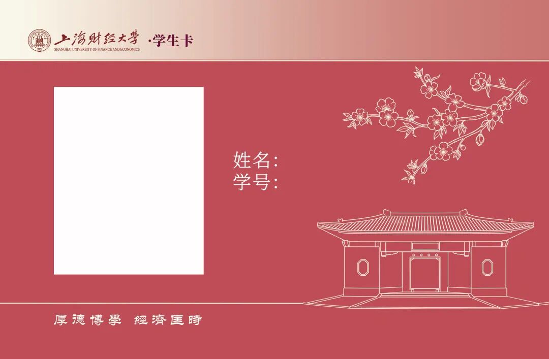 设计理念:本系列以上财校园常见的玉兰花为核心意象,以“财园春韵玉兰纪”为主题,承载校园文化与身份标识。学生卡(上财红):科研实验大楼为主体,鎏金绘建筑肌理,红底衬玉兰盛放,尽显学子朝气与财园活力。
