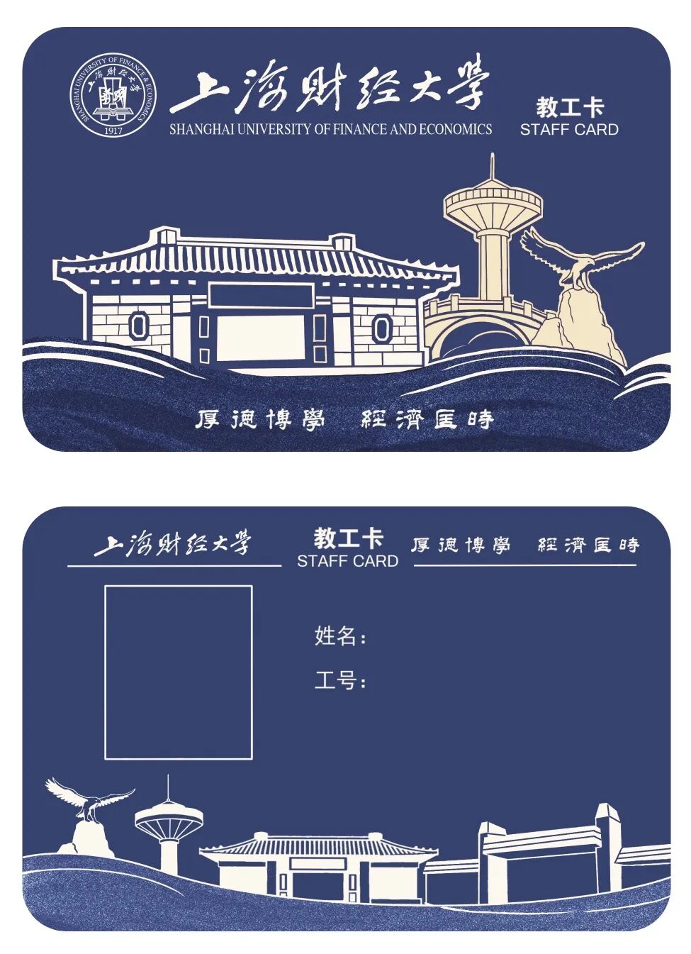 职工卡(上财蓝):红瓦楼为核心,蓝底映玉兰清韵,凸显师者严谨治学、立德树人风范。临时卡(春晖绿):春晖湖桥入画,绿底缀玉兰新枝,以春意传递欢迎之意,彰显财园人文温度。校友卡(筑梦橙):老校门入画,暖橙为底,鎏金勾勒建筑风骨,承载校友记忆与母校深情,彰显薪火相传的赤诚荣光。
